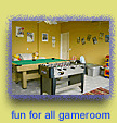 large game room, complete with pool table, foosball table, dart board, and lots of toys for the little ones