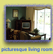 living room with picturesque view of pool and woodlands, and equipped with cable TV, VCR, and X-Box with games