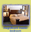 master suite with glass sliders to pool, king size bed, cable TV, roman-style garden bath with waterfall faucet, large separate shower, and walk-in closet